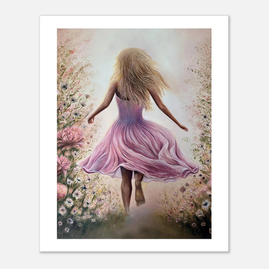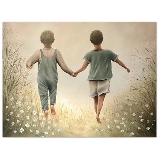 Barnens Dröm – Oljemålning Poster av Springande Barn i Magiskt Ljus