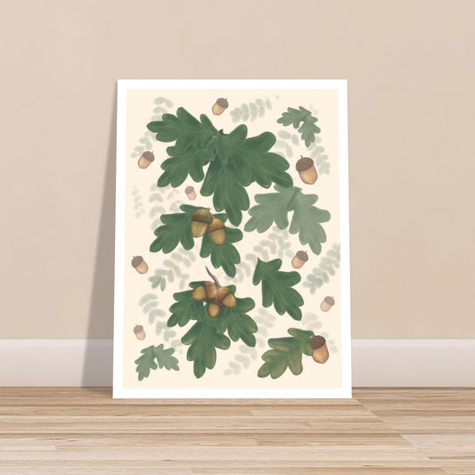 Elegant Green Oak Leaf Poster – Autumn Decor for Children's Rooms
