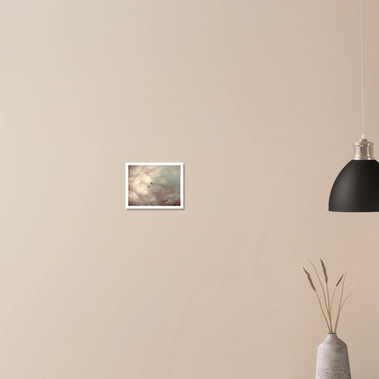 Dancing Sky Poster – Vibrant Artwork of Swans Flying Over a Beautiful Sky
